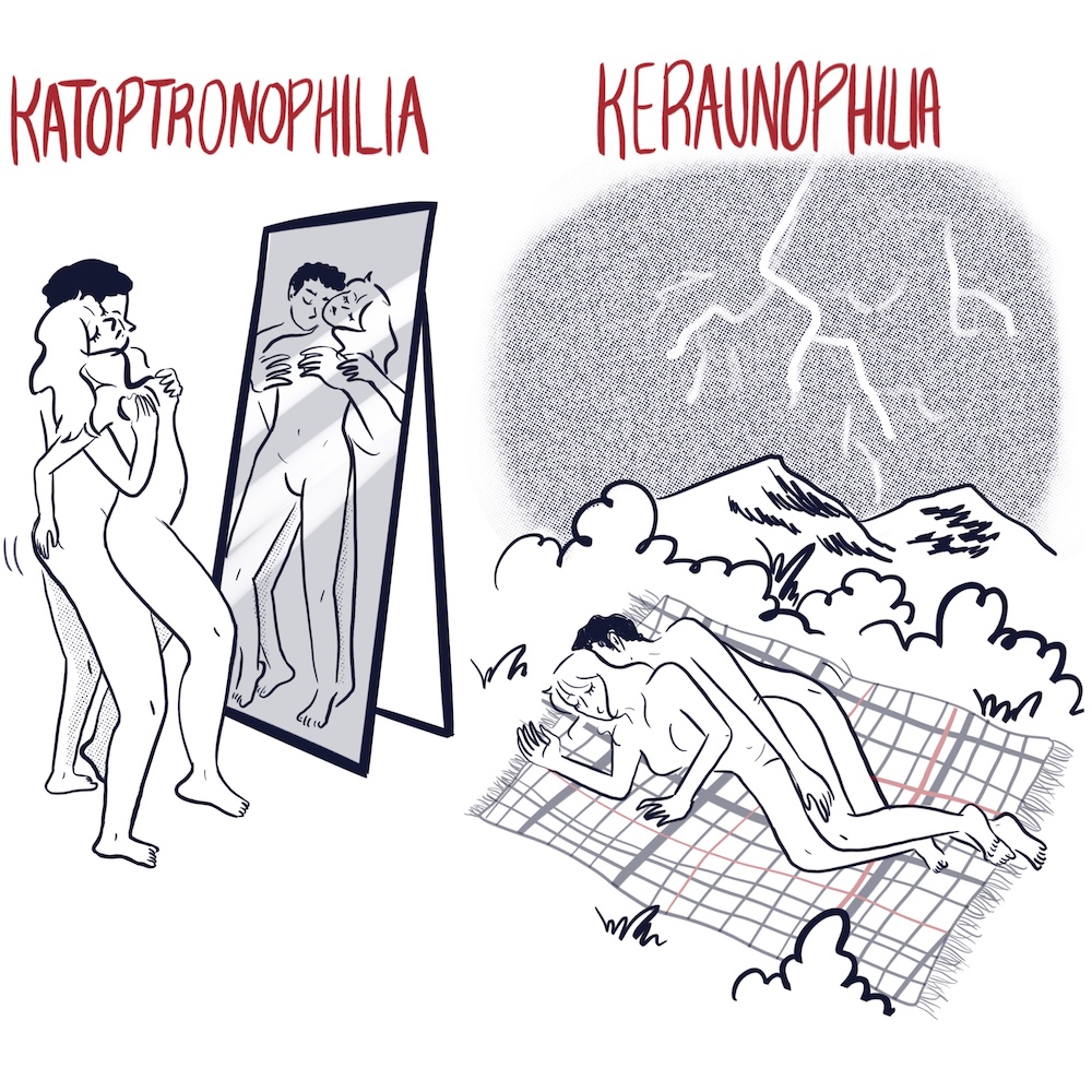 Aquaphilia: fetish for water and having sex in water or around it. This can extend to a fetish for swimwear or posing in water, even if it doesn’t involve sexual activity.