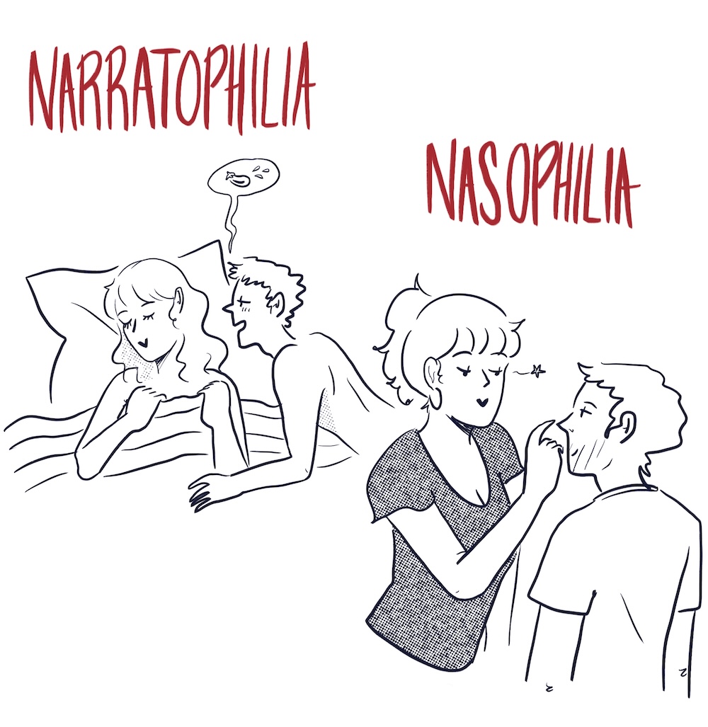 2) is there a kink for licking tongues? Kinda like making out but lips aren’t touching. I see that in hentai a lot and I’m curious.