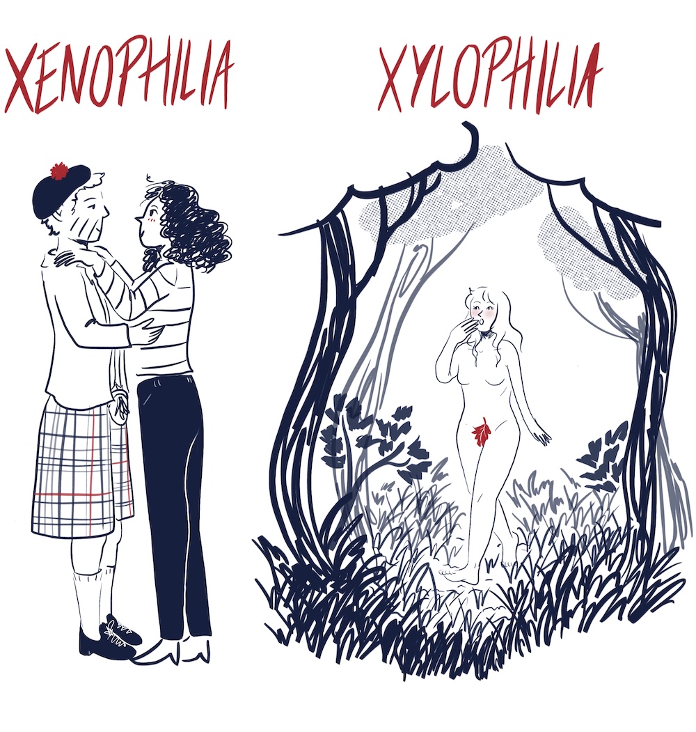 Dendrophilia: also known as Arbophilia, and one of the most interesting kinks people have. A sexual attraction to trees, either because they are phallic-shaped or because of the texture. May overlap with xylophilia.